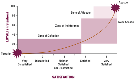 Het hebben van tevreden klanten betekent niet automatisch dat ze loyaal zijn. Jones & Sasser (1995) introduceren het concept van de “breakaway zone”. Dit is het punt waarop een klant verder gaat dan tevredenheid en een emotionele band met een merk ontwikkelt.